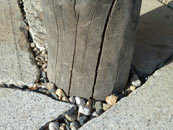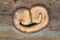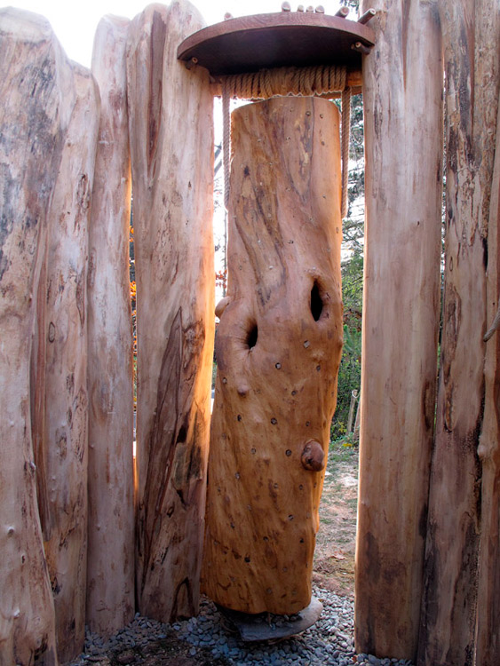 2010 Prvky vytvořené z kmenů pokácených na zahradě mateřské školky společnosti Maitrea ve Slušticích