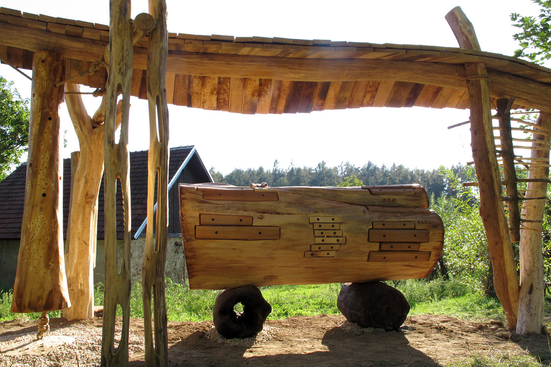 2011 Lithofon - kamenný hudební nástroj ze znělce, čediče, zkamenělého dřeva a syenitu, Botanická zahrada hl. m. Prahy