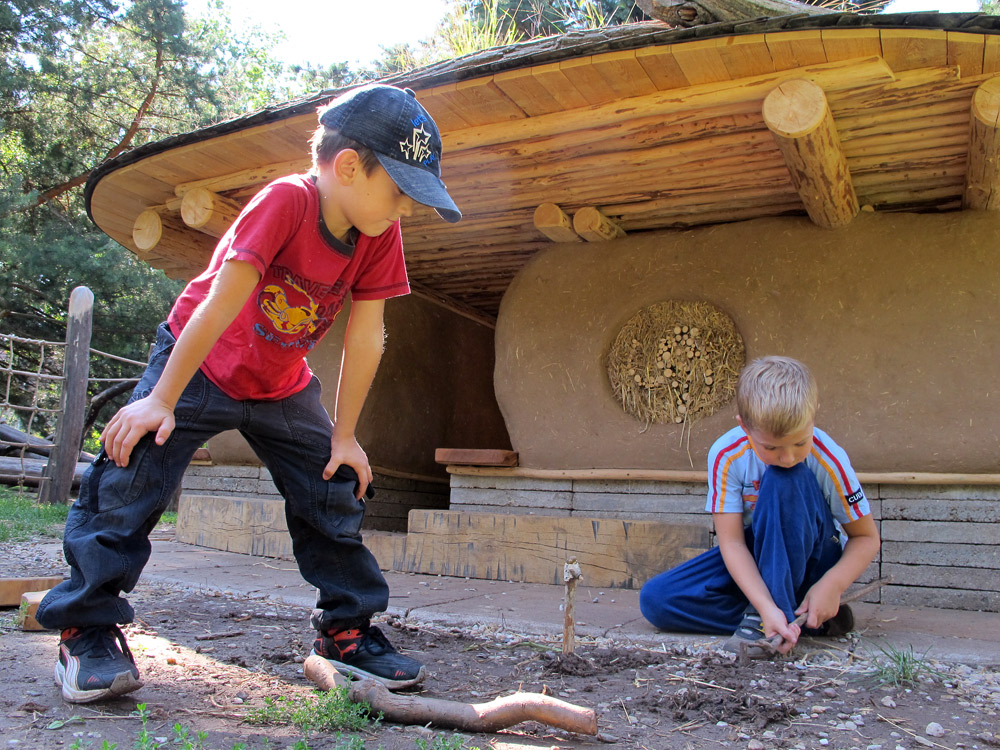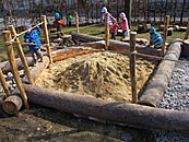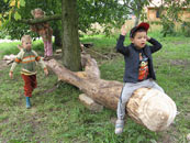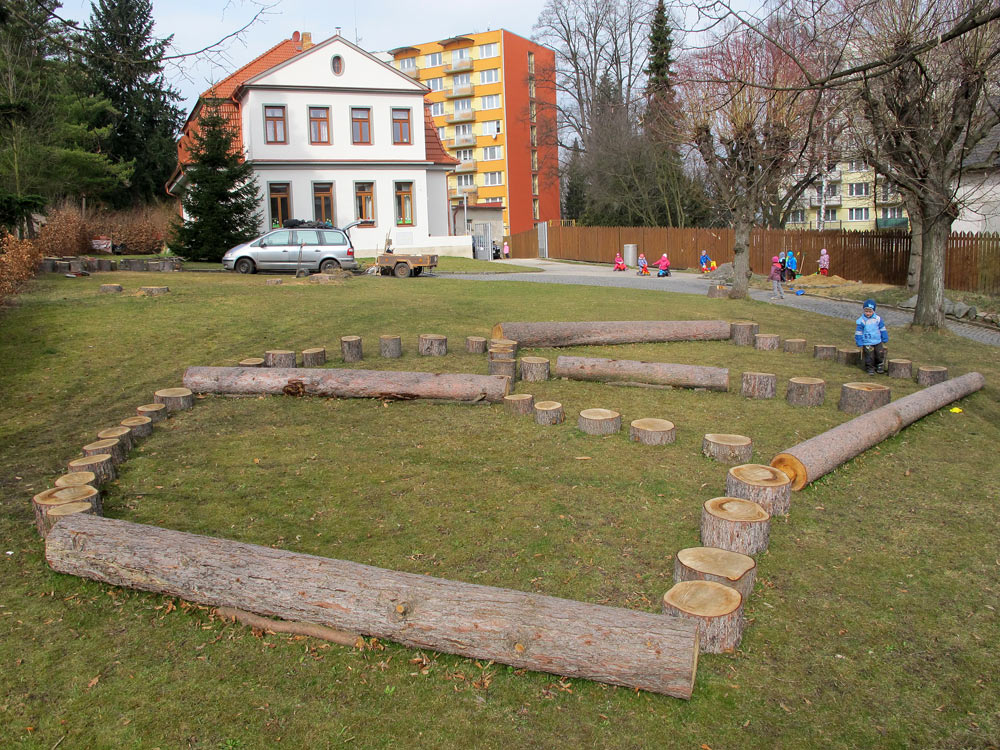 2011 Prvky vytvořené z kmenů a kamenů na zahradě mateřské školky společnosti Maitrea ve Slušticích