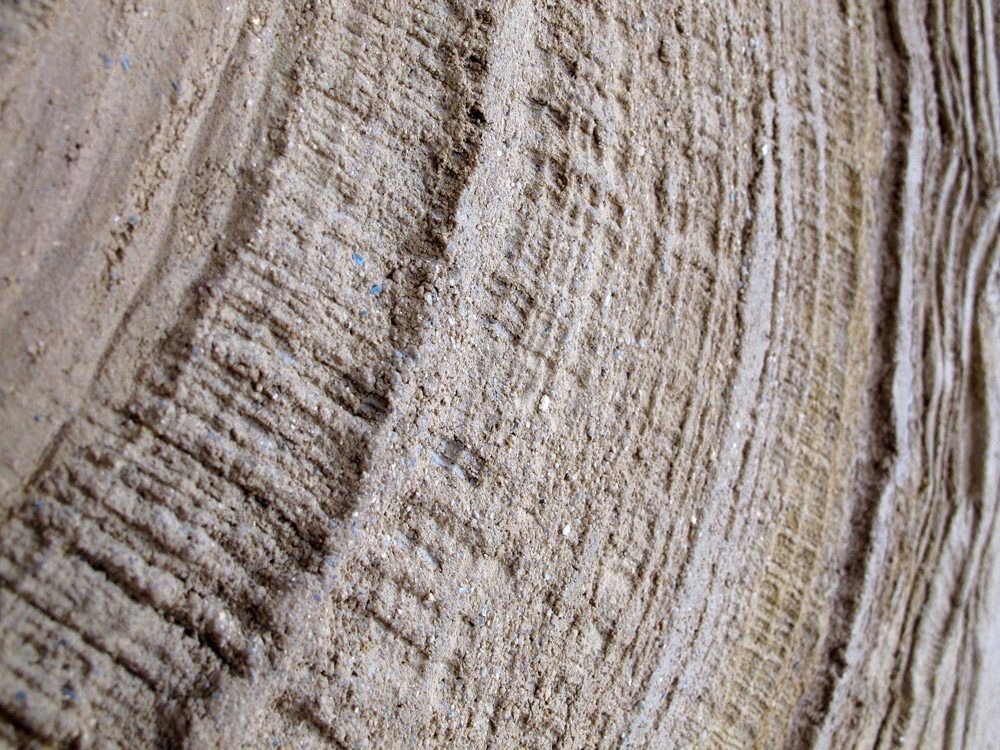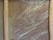 Obraz (530x320 cm) jsem vytvořil z čistě přírodních materiálů – hlíny, písku, štěrku, slaměné a konopné řezanky a včelího vosku s damarovou pryskyřicí. Vlastnoručně připravené materiály jsem kombinoval s barevnými hliněnými omítkami Picas řady Art od firmy Rigi.