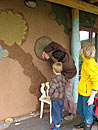 Hliněný reliéf v interiéru školského zařízení pro enviromentální vzdělávání – Lipka, Kamenná 20 Brno.